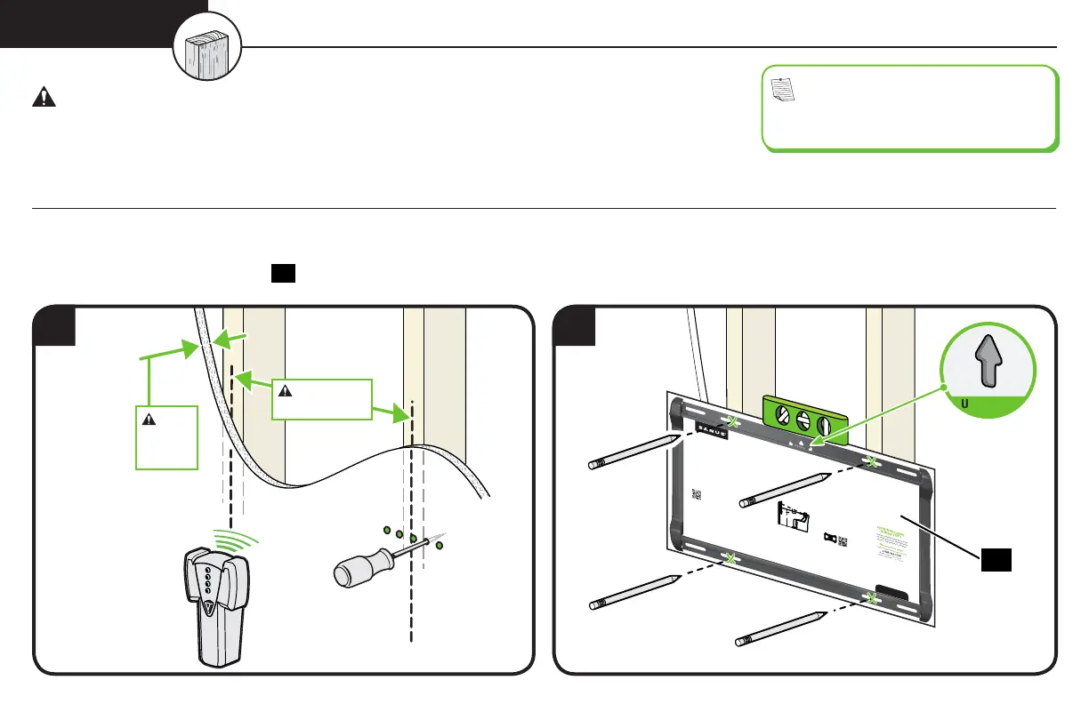 ● Stud centers must be verified – not all walls have conventional 16 in. (406 mm) stud spacing
