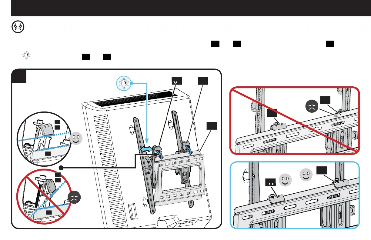 1. Install the TV / Bracket assembly by fitting the top hooks of BOTH TV brackets