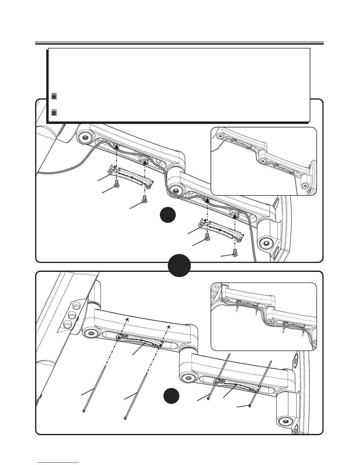 NOTE: Pull the arm to its full extension before routing the cables through the channels, then loosely route the cables.