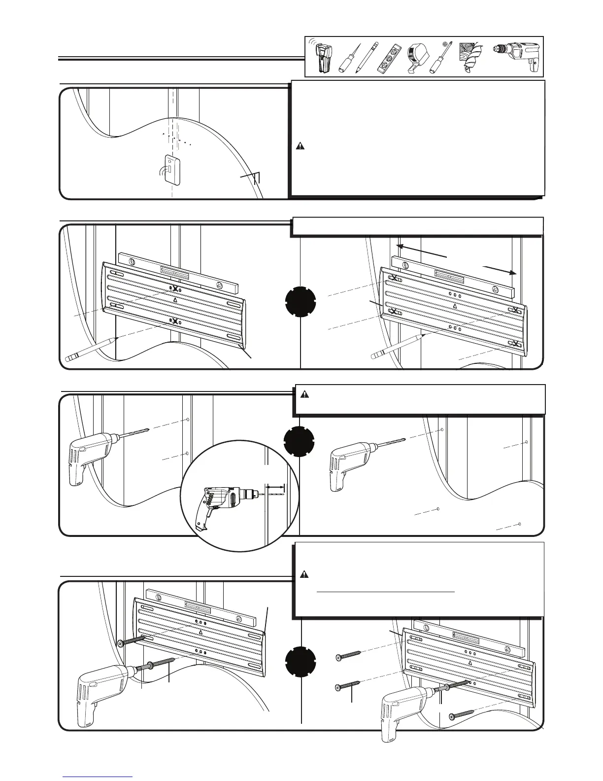 Ù Tighten the lag bolts only until they are pulled firmly against the