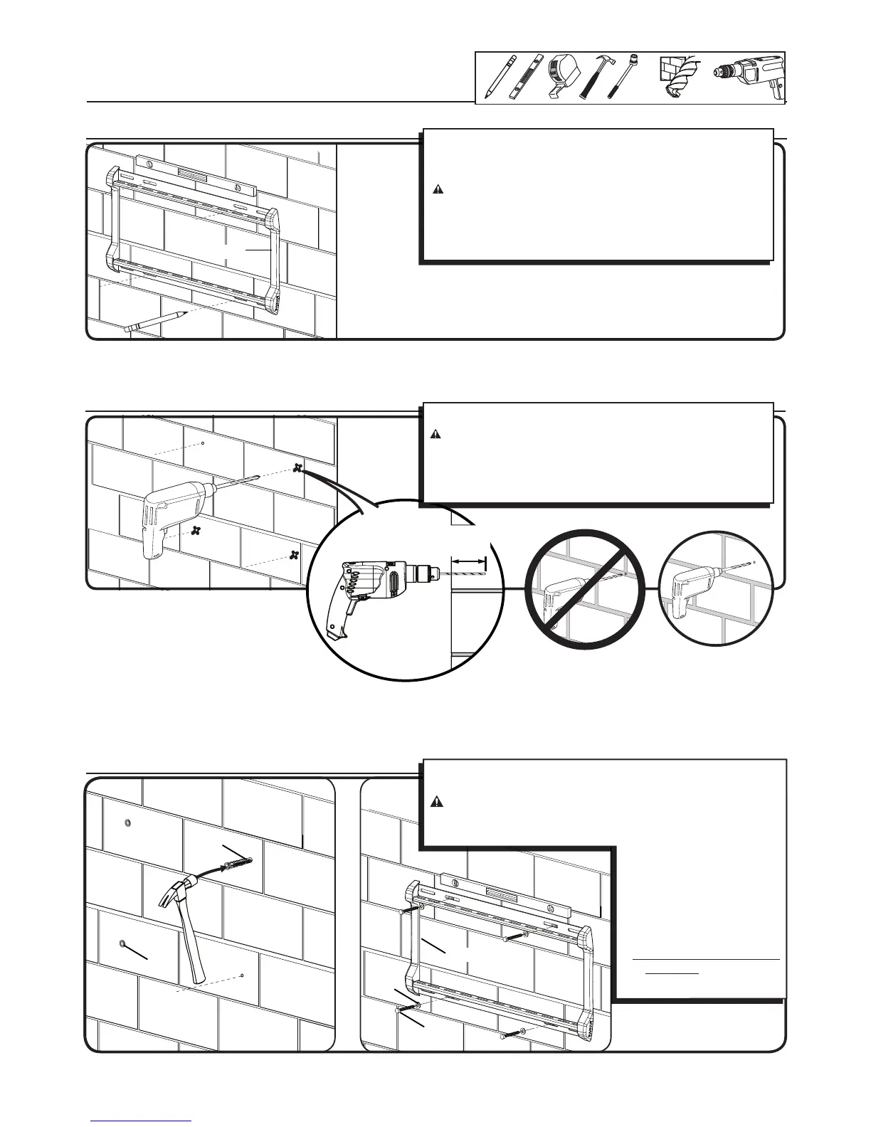 Ù Pilot holes MUST be drilled to a depth of 89 mm (3.5 in.) using