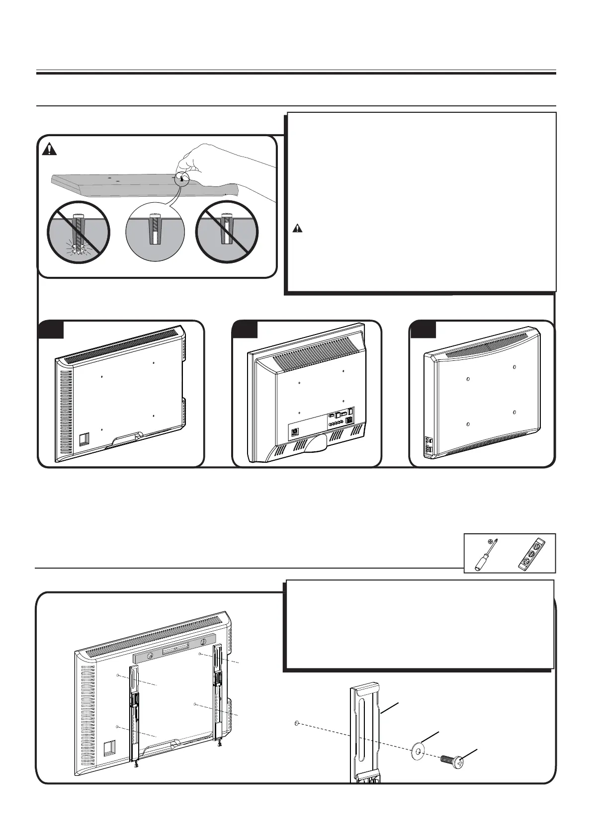 B. Installation option using 14mm spacers (TVs with irregular backs)