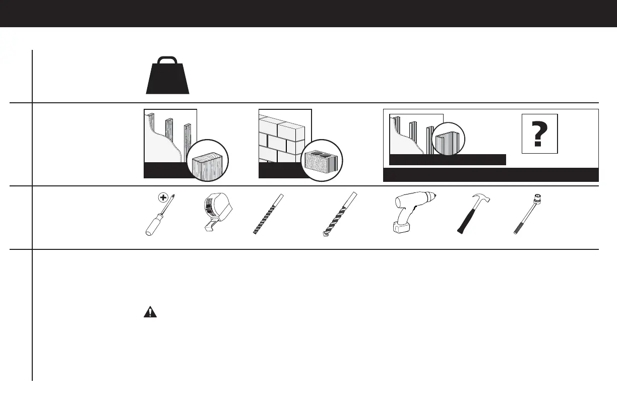 ● The wall must be capable of supporting fi ve times the weight of the TV and mount combined.