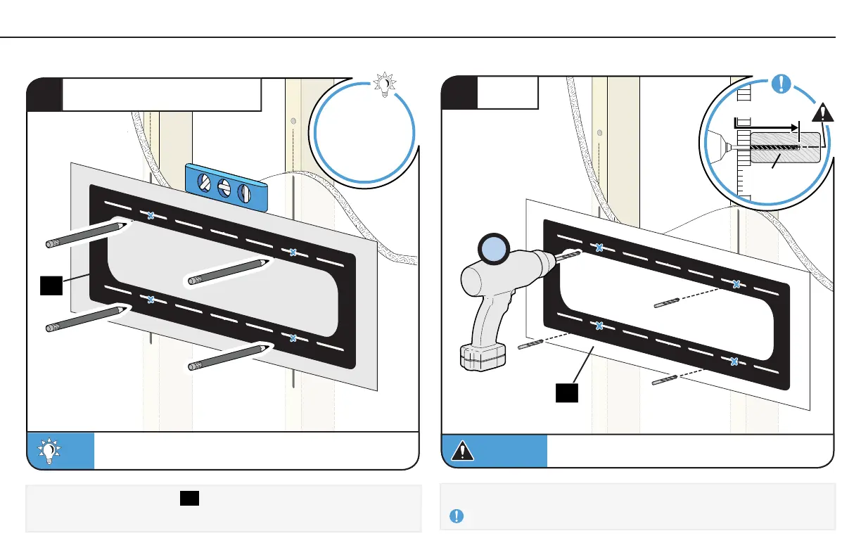 IMPORTANT: Pilot holes must be drilled to a depth of 2 ¾ in. (6.9 cm).