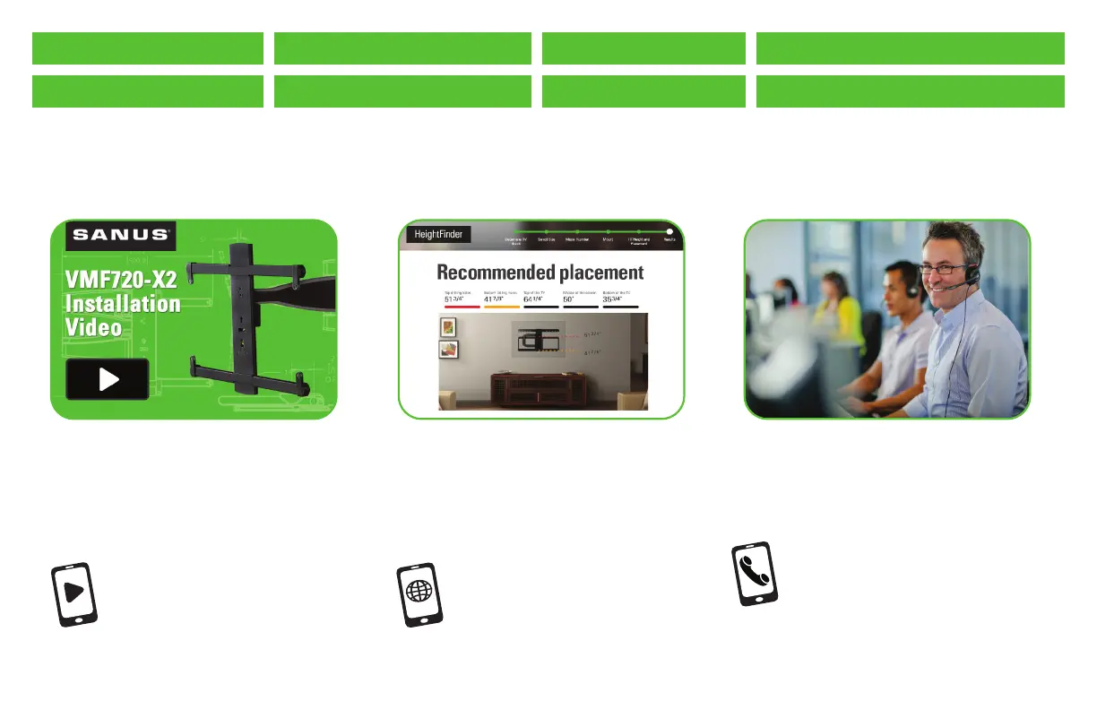 Sanus VMF720-B2 - WERE HERE TO HELP; Installation Video; HeightFinder Tool; Customer Support