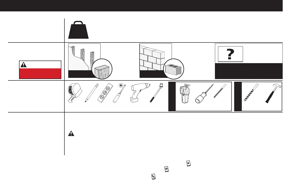 ● Le mur doit pouvoir supporter cinq fois le poids total du téléviseur et du support.