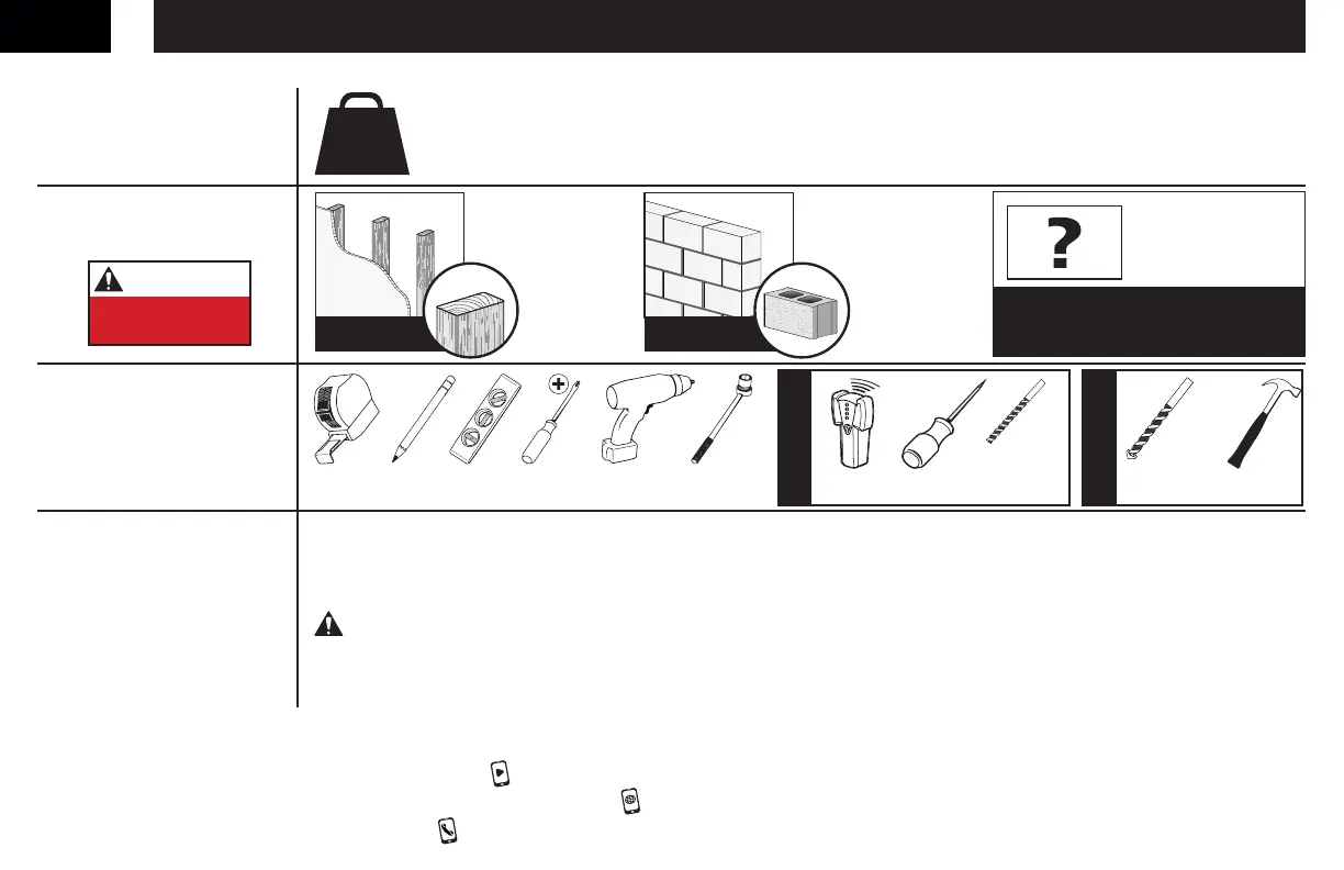 ●● 此产品用于木墙柱、实心混凝土和混凝土砌块墙 — 不要仅安装在干墙上