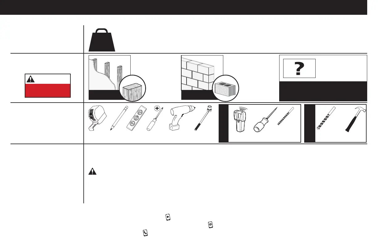 ●● この製品は、木製スタッド、コンクリート、またはコンクリートブロック製の壁への取り付け専用です。石膏ボードだけの壁に