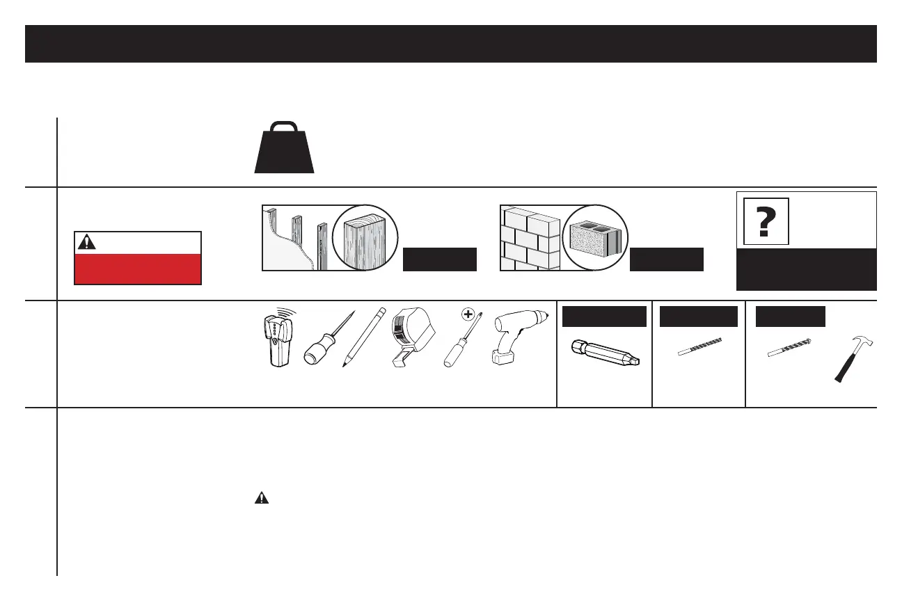 ● nvisningar och monteringstillbehör för användning på träregel, massiv betong och betongblock – MONTERA INTE i bara en gipsvägg.