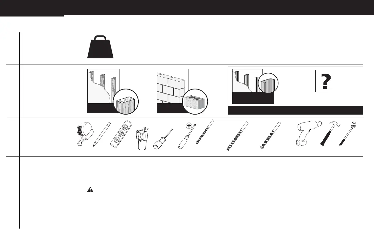 ● De wand moet geschikt zijn om vijf keer het gecombineerde gewicht van de tv en de montagesteun te ondersteunen.