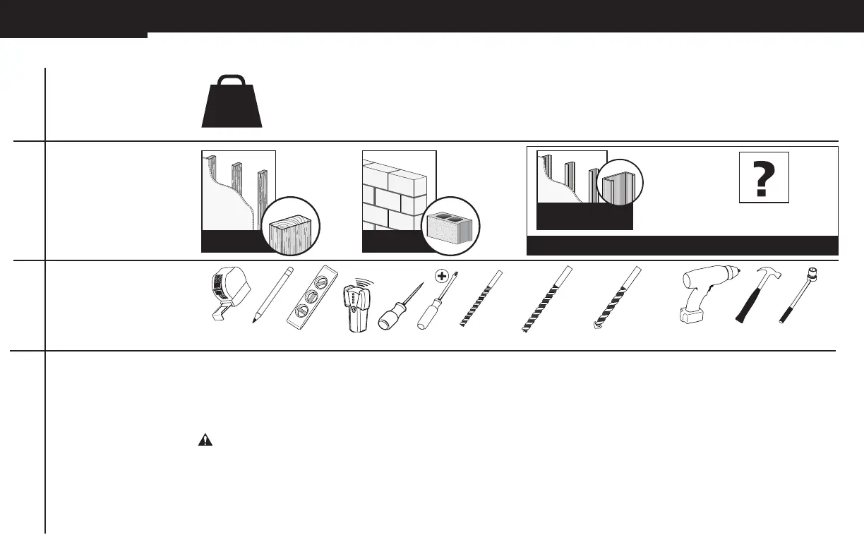 ● nvisningar och monteringstillbehör för användning på träregel, massiv betong och betongblock – MONTERA INTE i bara en gipsvägg.
