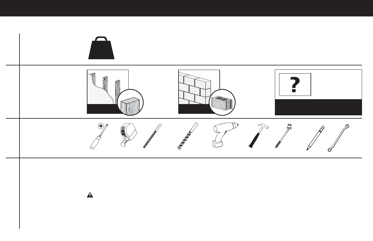 ● The wall must be capable of supporting fi ve times the weight of the TV and mount combined.