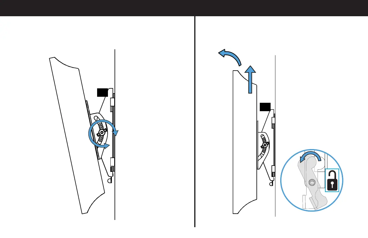 REMOVING THE TV: Place the locking tab into the unlocked