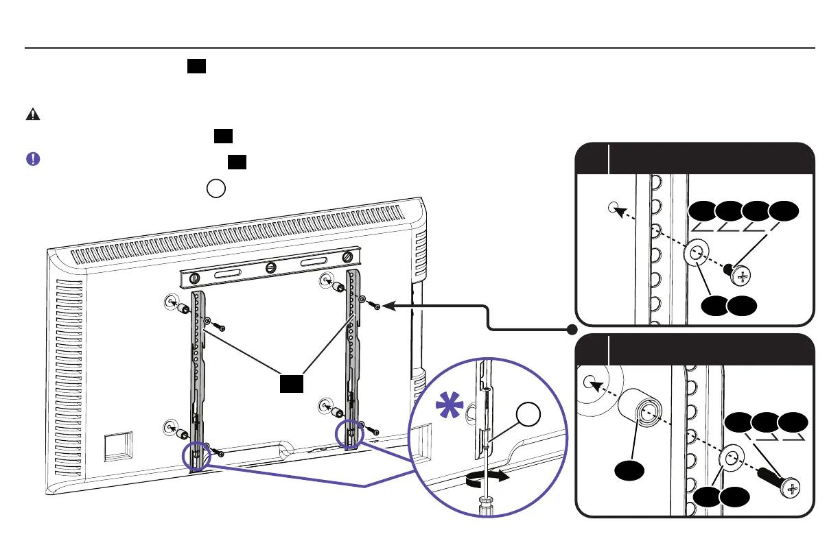 CAUTION: Avoid potential personal injuries and property damage! DO NOT use power tools for this step. Tighten the TV screws only