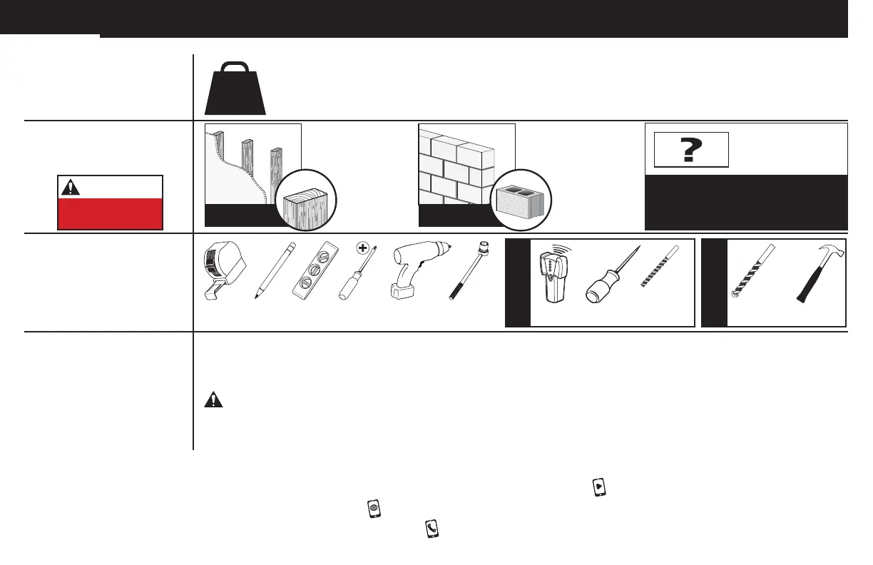 ● Väggen måste kunna bära en vikt på upp till fem gånger TV och upphängning tillsammans.