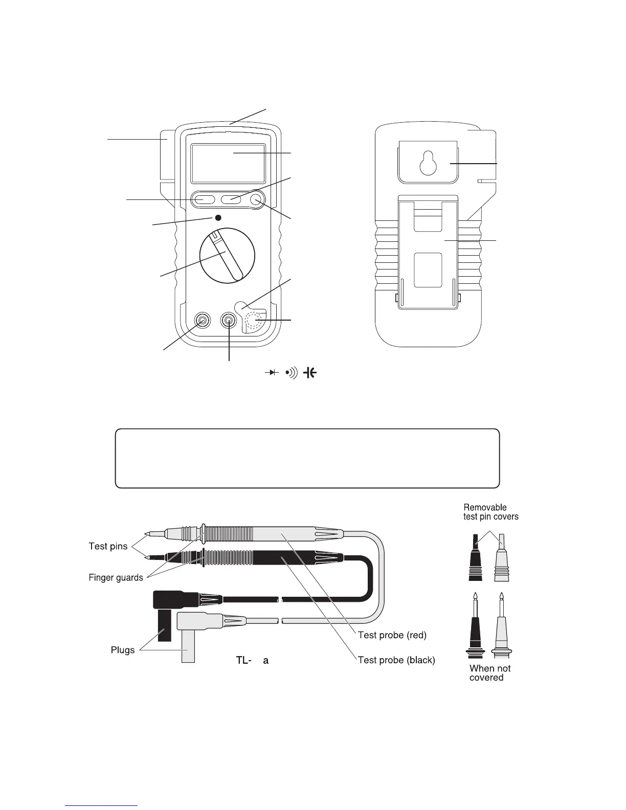 When the removable test pin covers are not mounted: CAT.II 1000 V