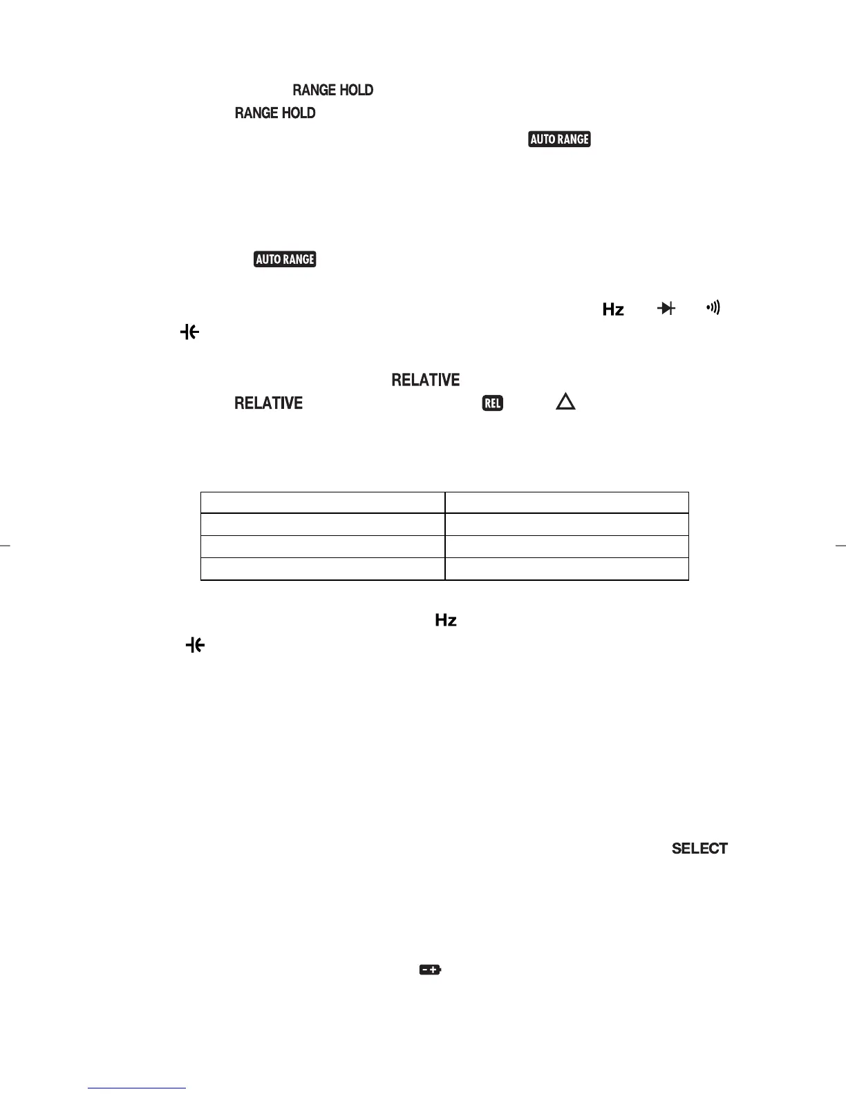 To return to the auto range, hold this button pressed for 1 second