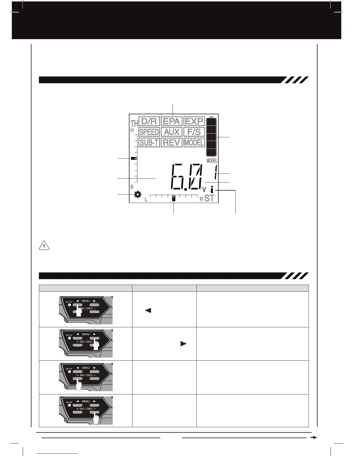 onto the display. For example, when you enter the SETUP menu and highlight D/R, MOD will be displayed in the Programming