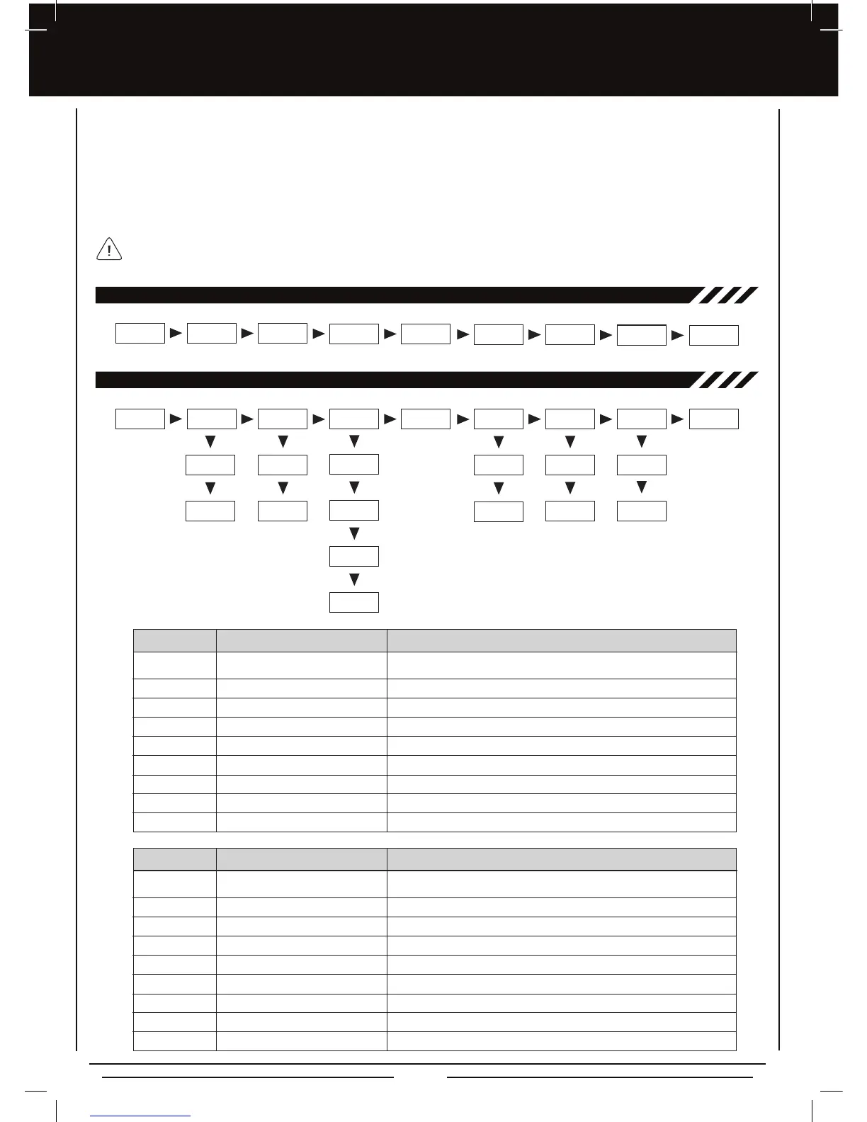The Menu Flow Chart shows the different menus that are available for programming your transmitter. The default setting when