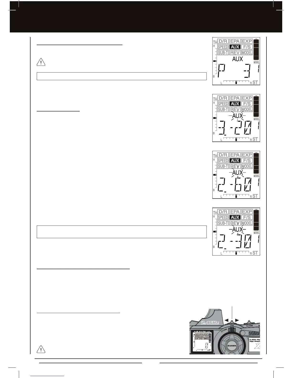 to cycle Backward through the programmed Point Auxiliary positions. The Auxiliary Channel 3 servo will move the specified