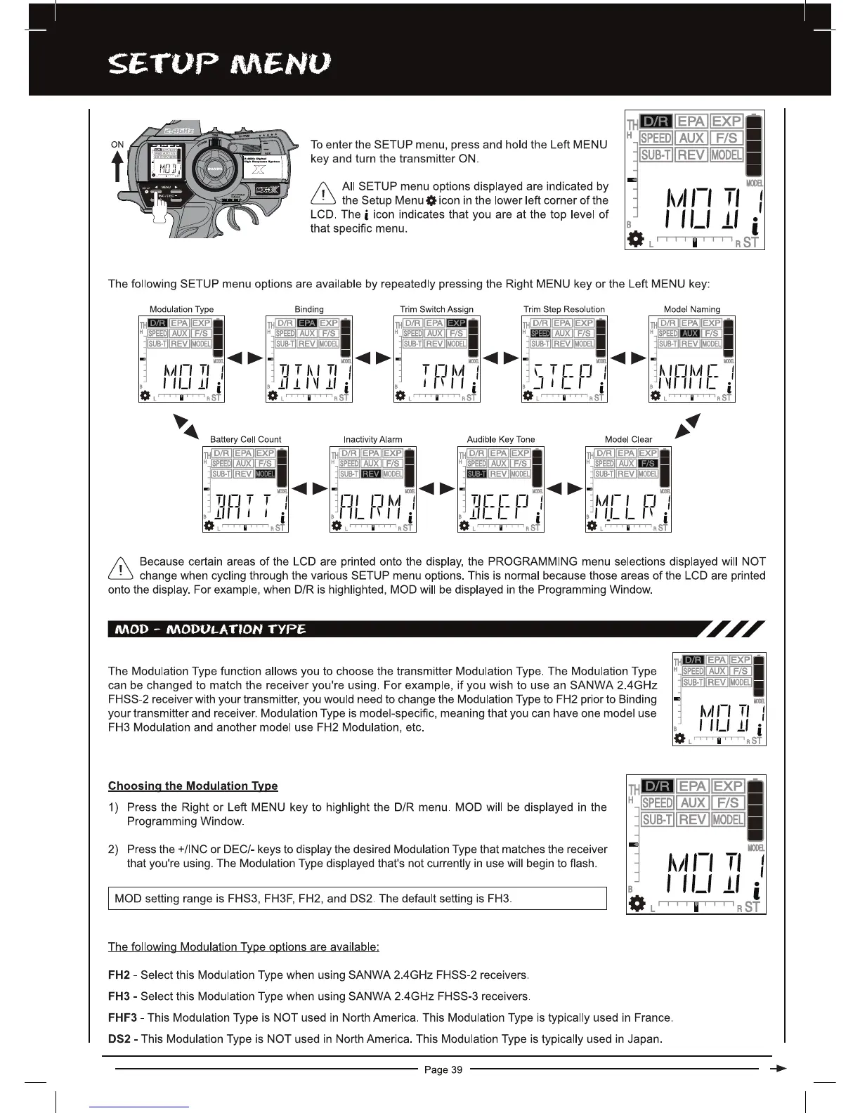 Sanwa MX-3X - Setup Menu; Modulation Type Selection