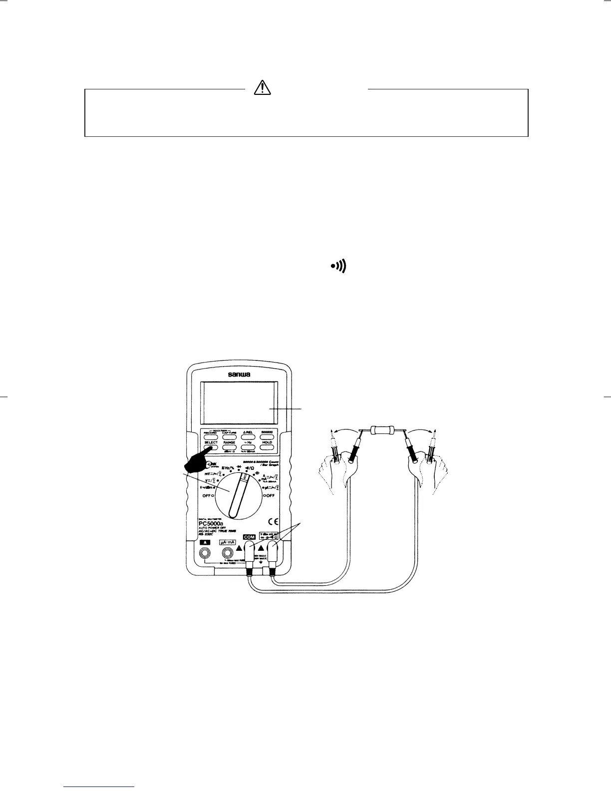 Set the function switch to 'Ω/' and select 'Ω' by pressing