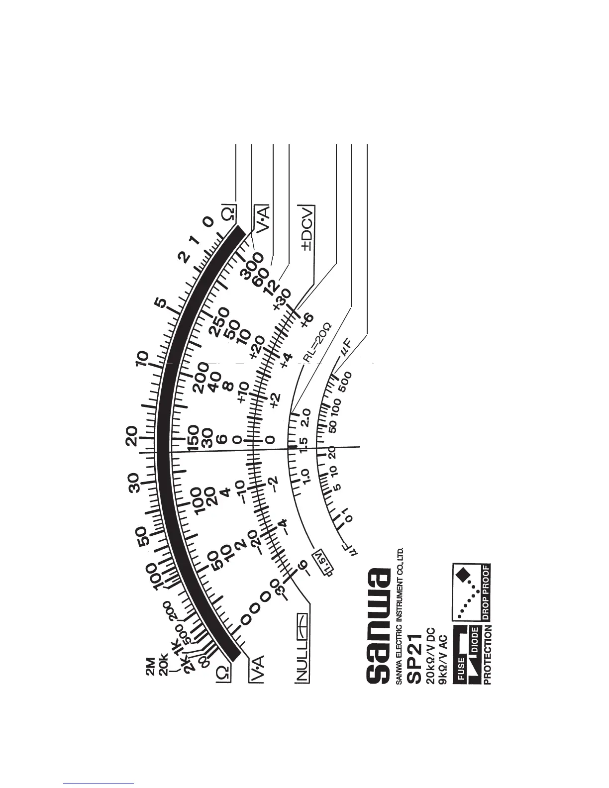 Sanwa SP21 - 【3】各部の名称 ; 4】指示の読み取り方; 4】Scale Reading
