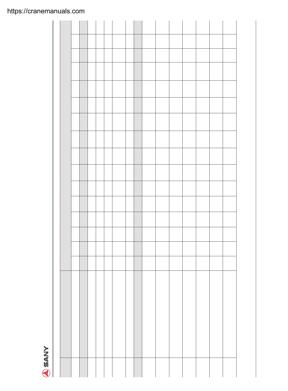 1*-- Daily before starting work 2*-- Weekly 3*-- Monthly 4* -- At least once a year 5*-- Before erecting the boom system, only for boom and jib parts.