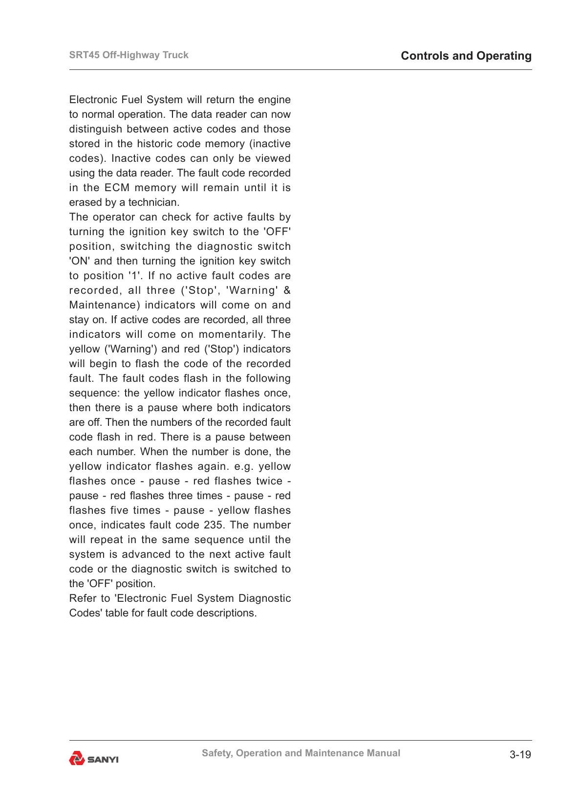 once, indicates fault code 235. The number