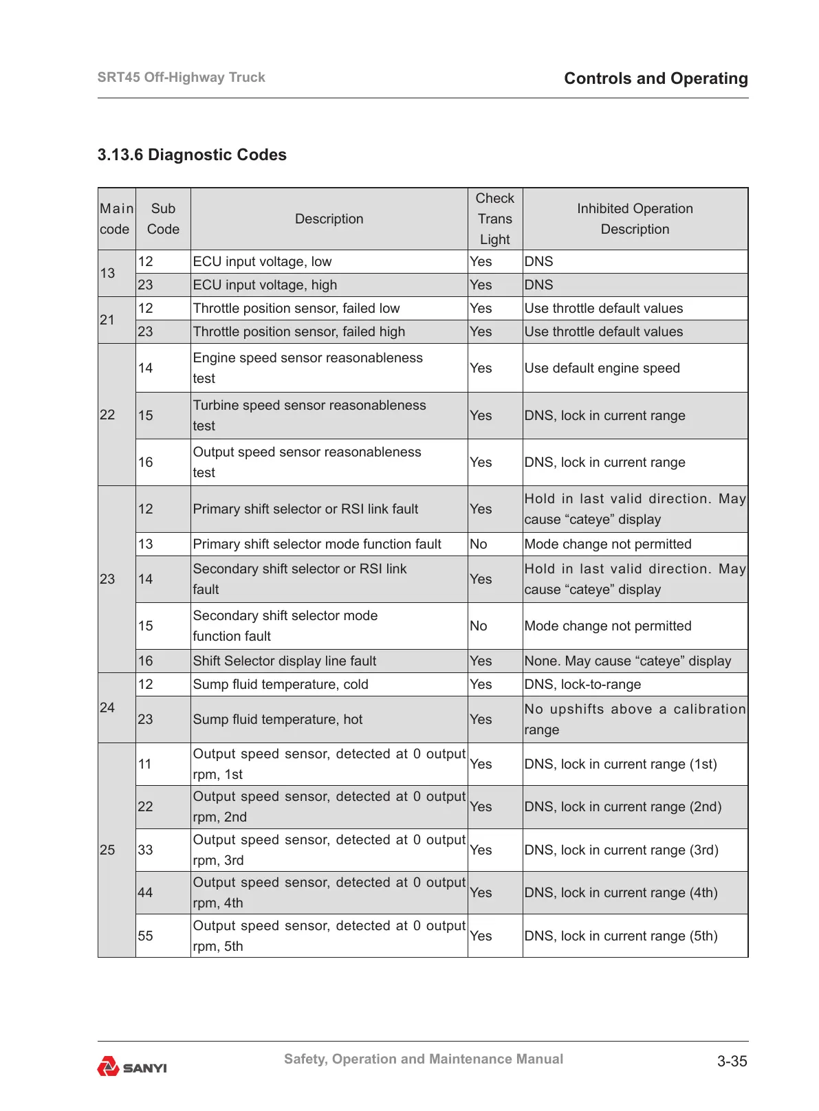 3.13.6 Diagnostic Codes