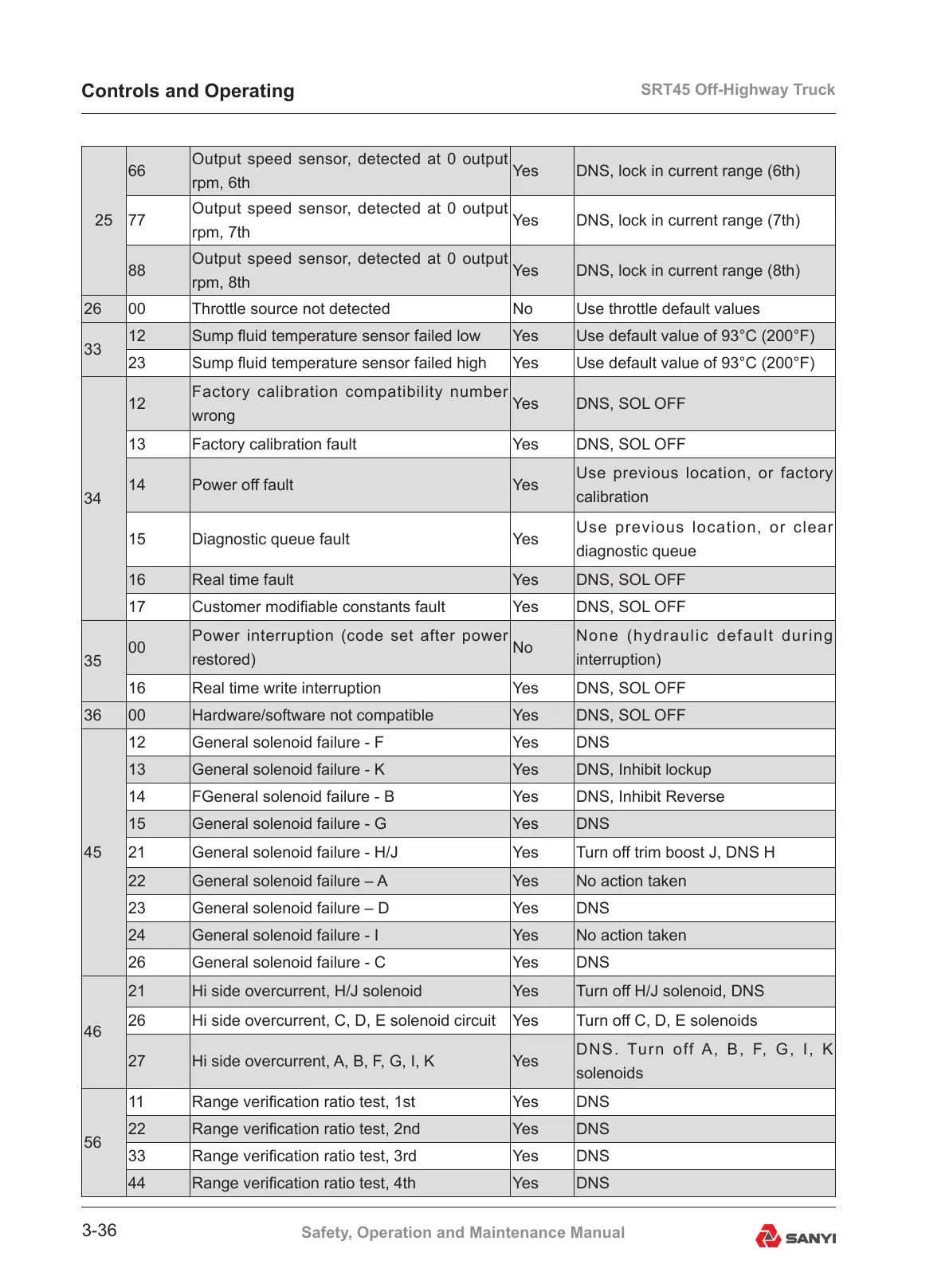 21 Hi side overcurrent, H/J solenoid Yes Turn off H/J solenoid, DNS
