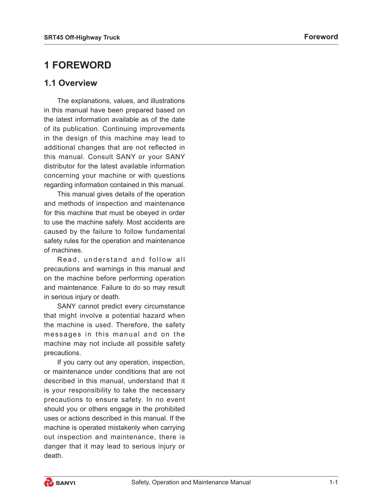 this manual. Consult SANY or your SANY