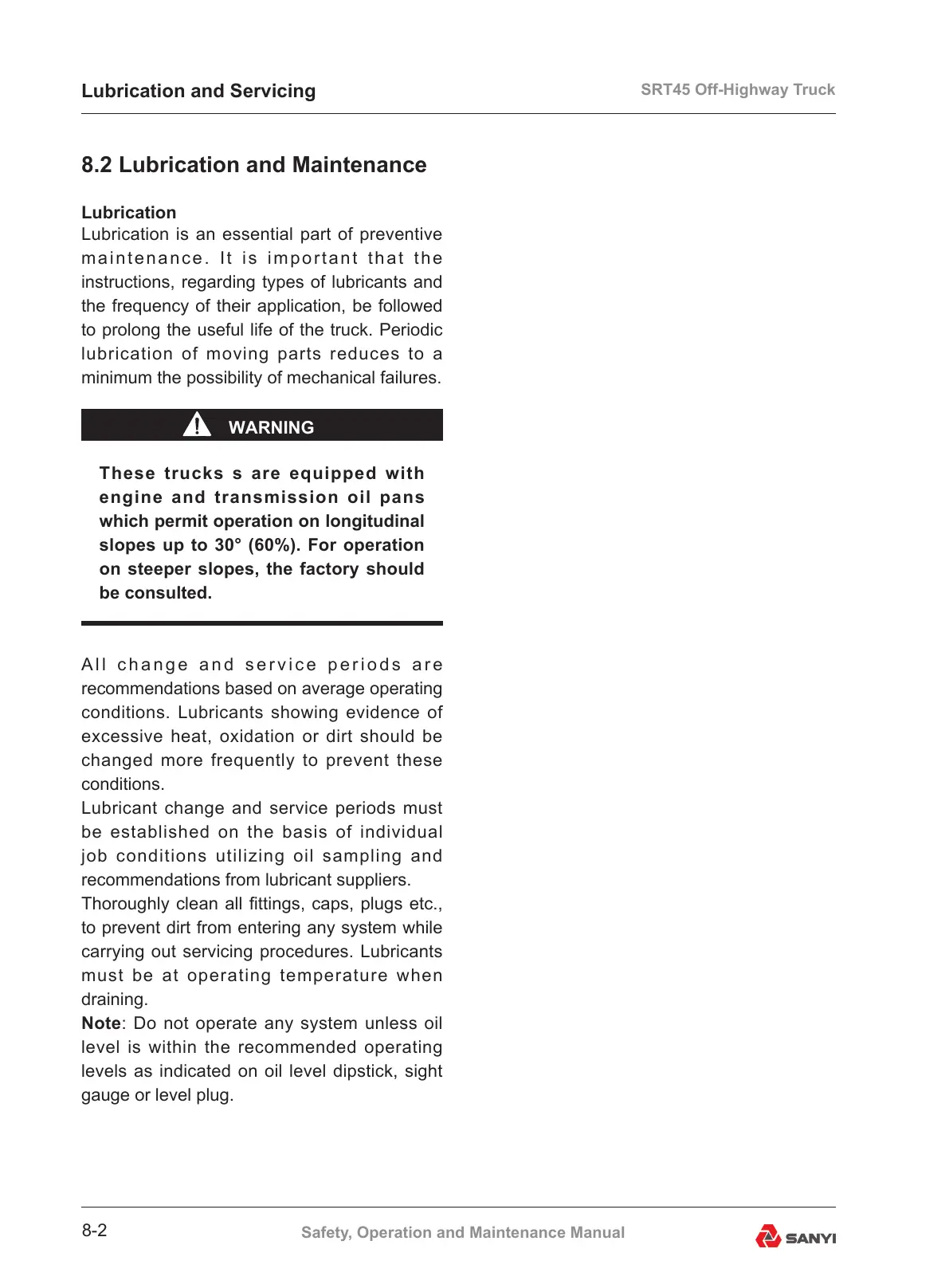 8.2 Lubrication and Maintenance