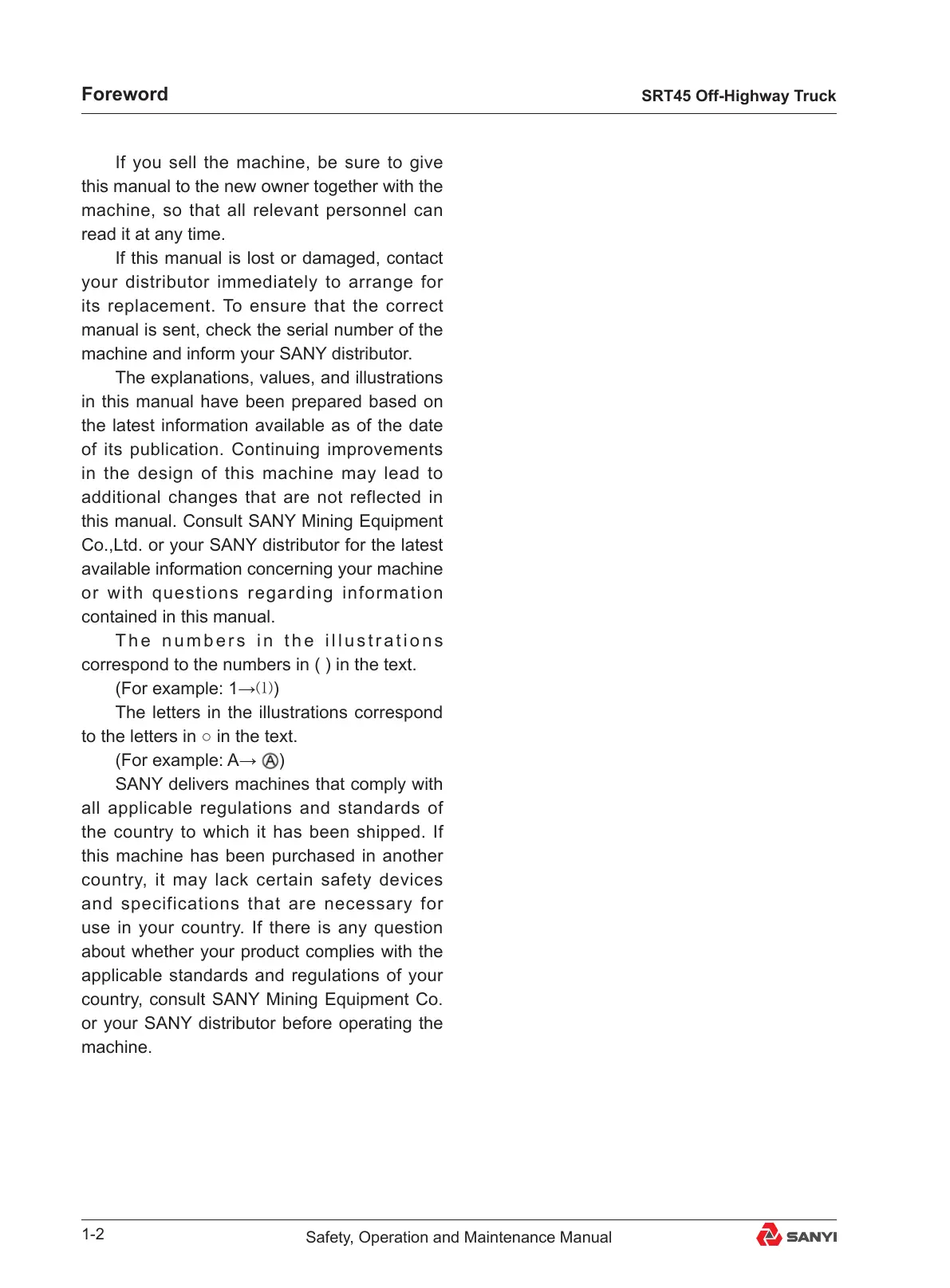 this manual. Consult SANY Mining Equipment