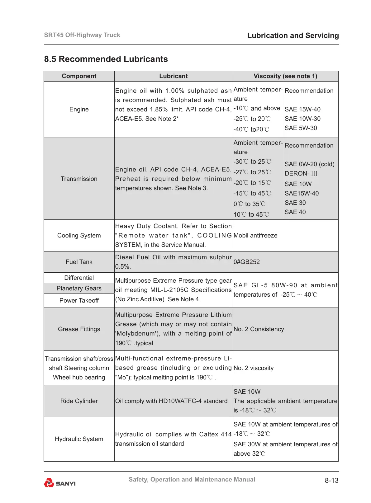8.5 Recommended Lubricants