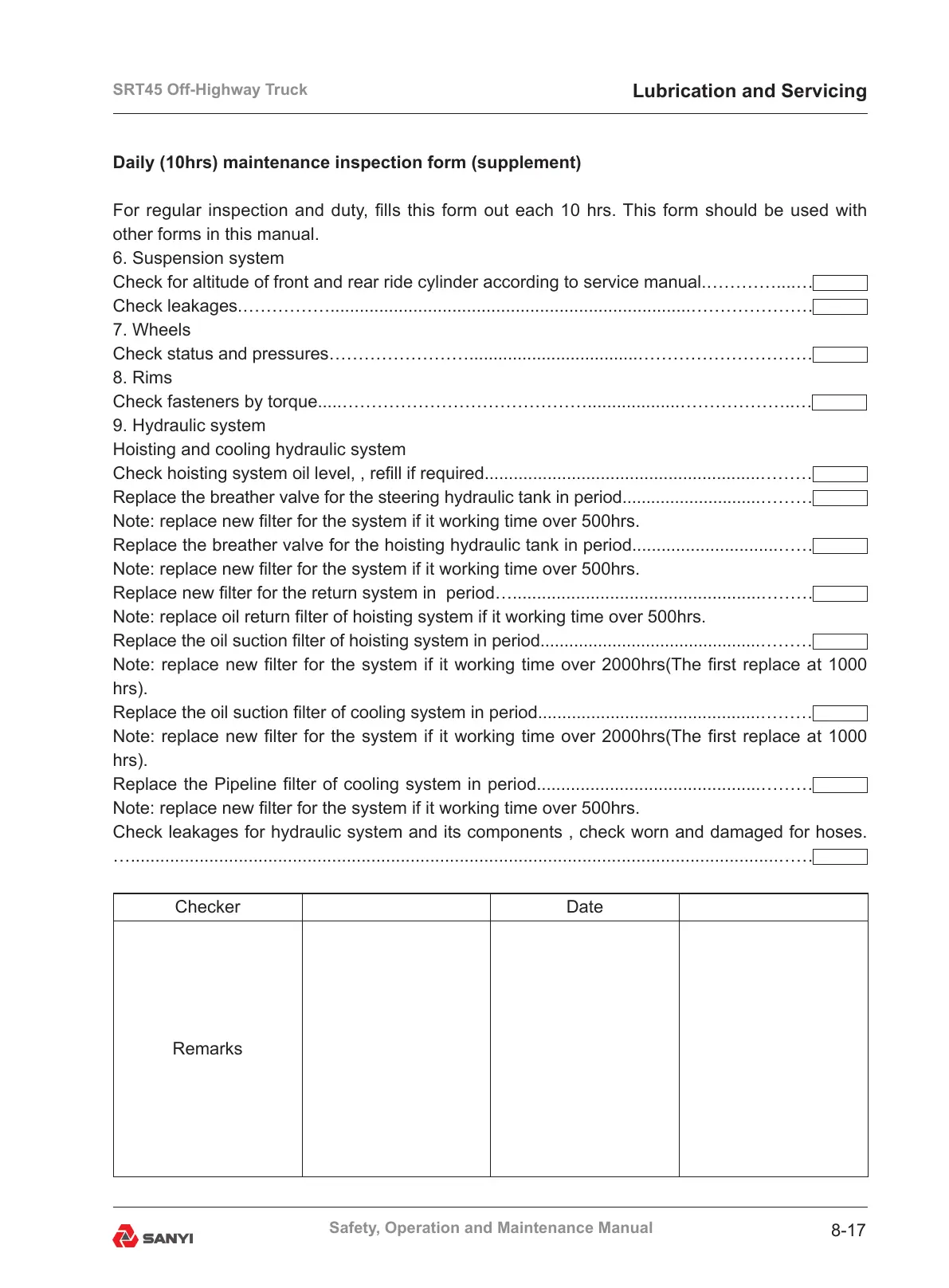 For regular inspection and duty, lls this form out each 10 hrs. This form should be used with
