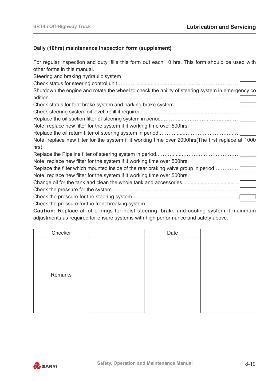 For regular inspection and duty, lls this form out each 10 hrs. This form should be used with