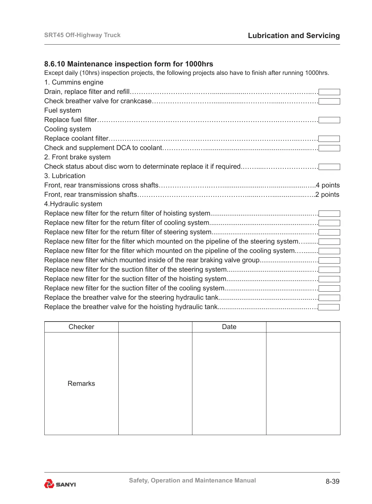 Except daily (10hrs) inspection projects, the following projects also have to nish after running 1000hrs.