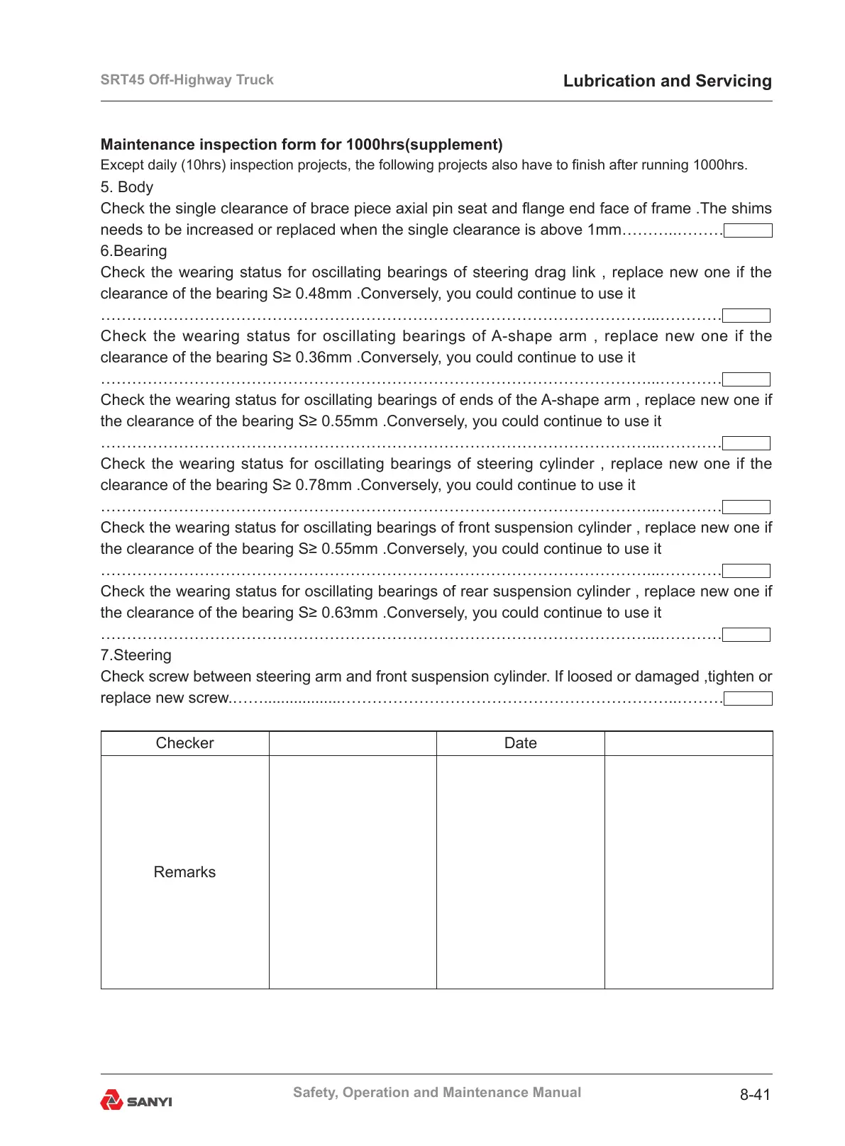 Except daily (10hrs) inspection projects, the following projects also have to nish after running 1000hrs.