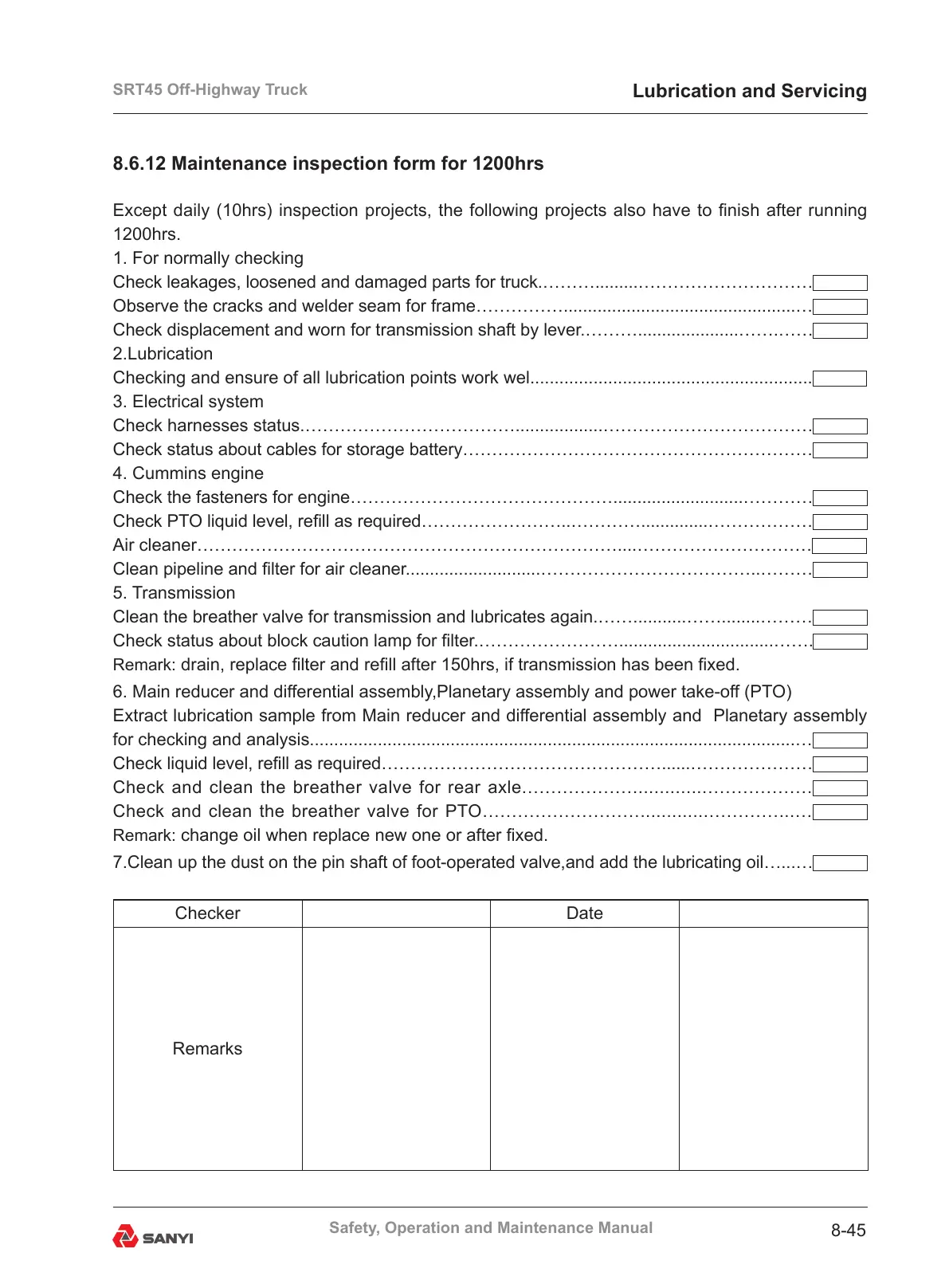 Check leakages, loosened and damaged parts for truck.……….........…………………………