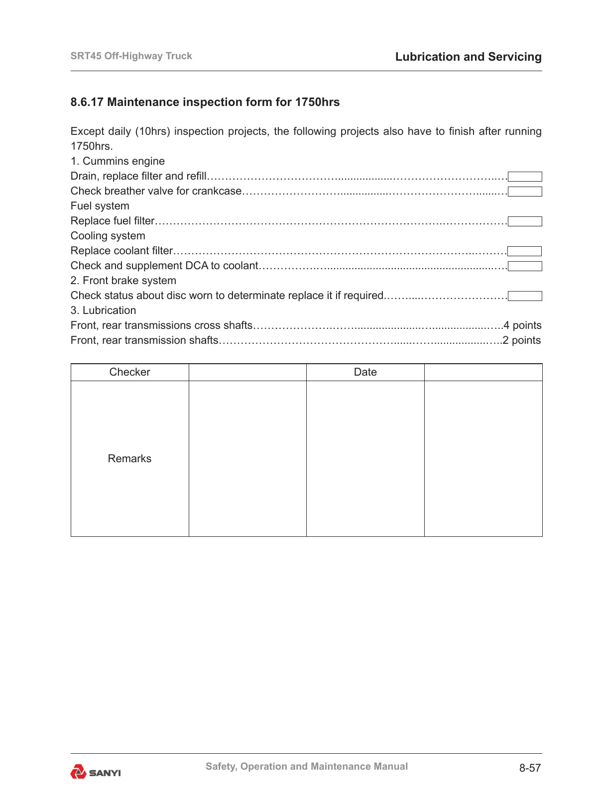 Except daily (10hrs) inspection projects, the following projects also have to nish after running