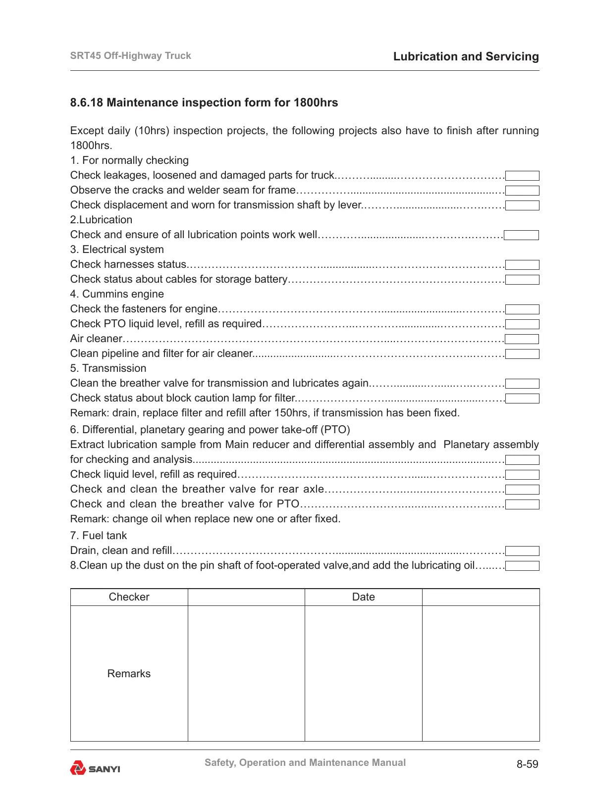 8.6.18 Maintenance inspection form for 1800hrs