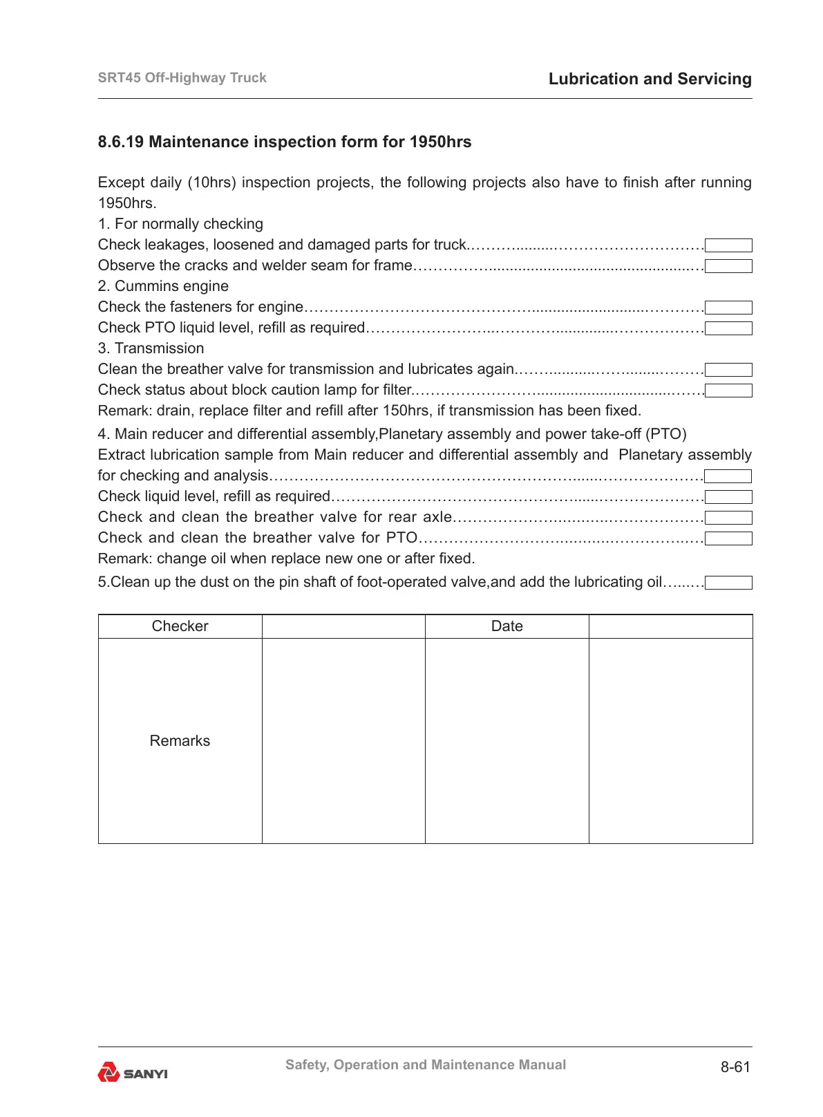 Check PTO liquid level, rell as required……………………..…………..............………………