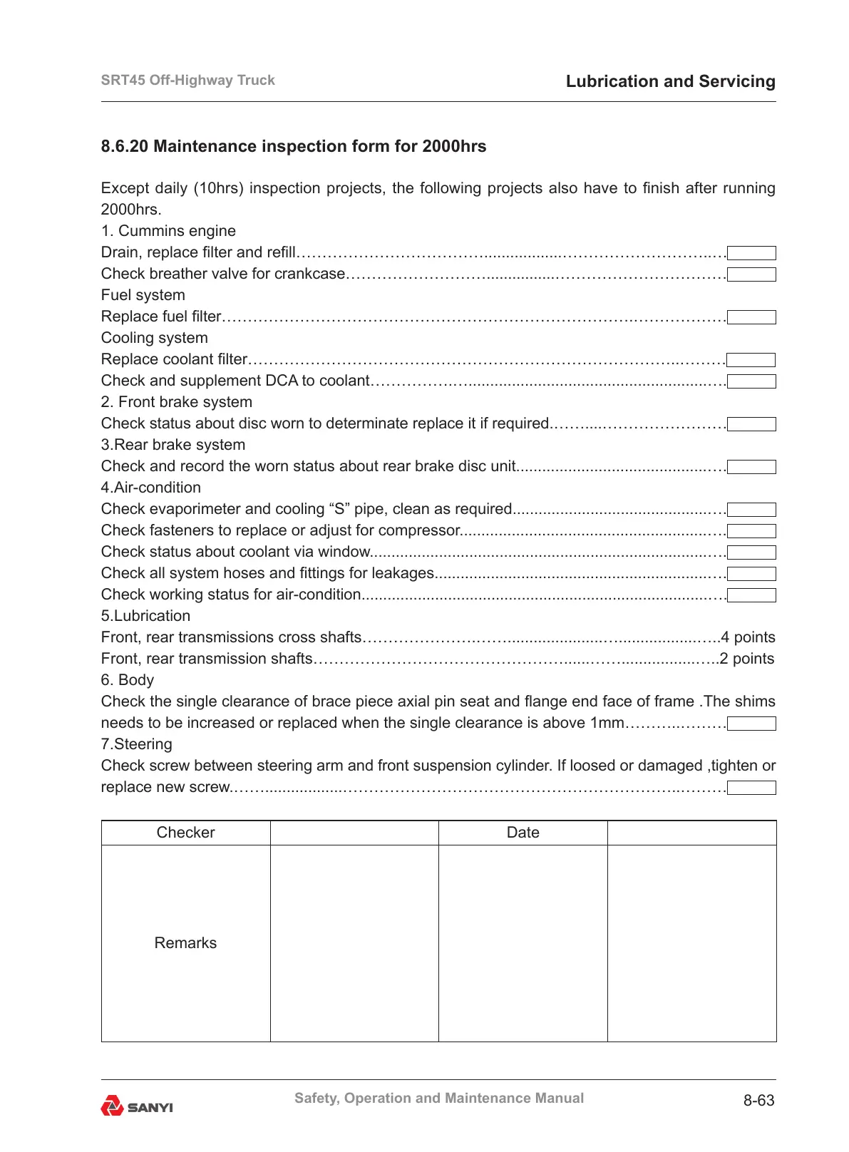 Except daily (10hrs) inspection projects, the following projects also have to nish after running