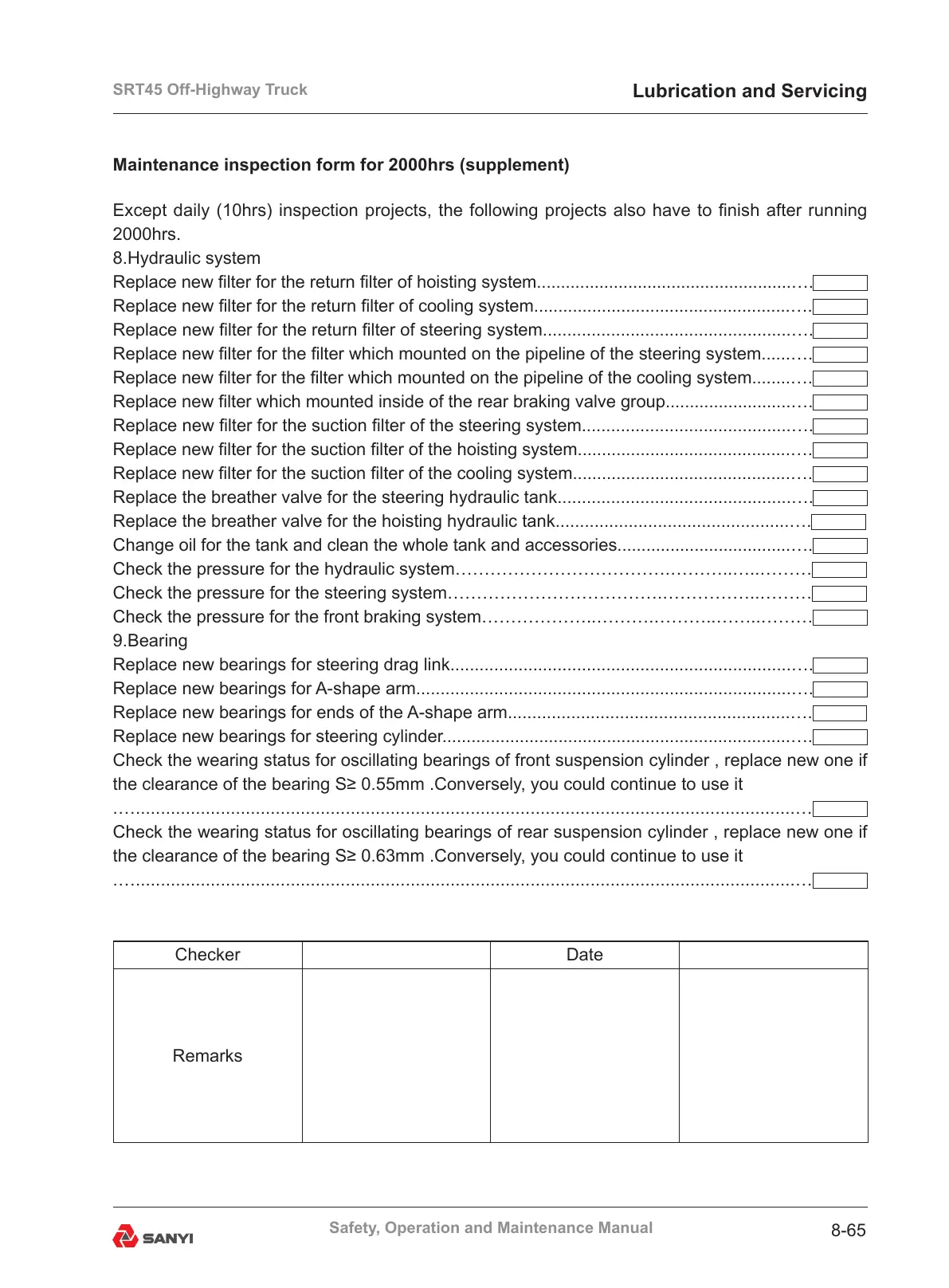 Replace the breather valve for the hoisting hydraulic tank................................................….