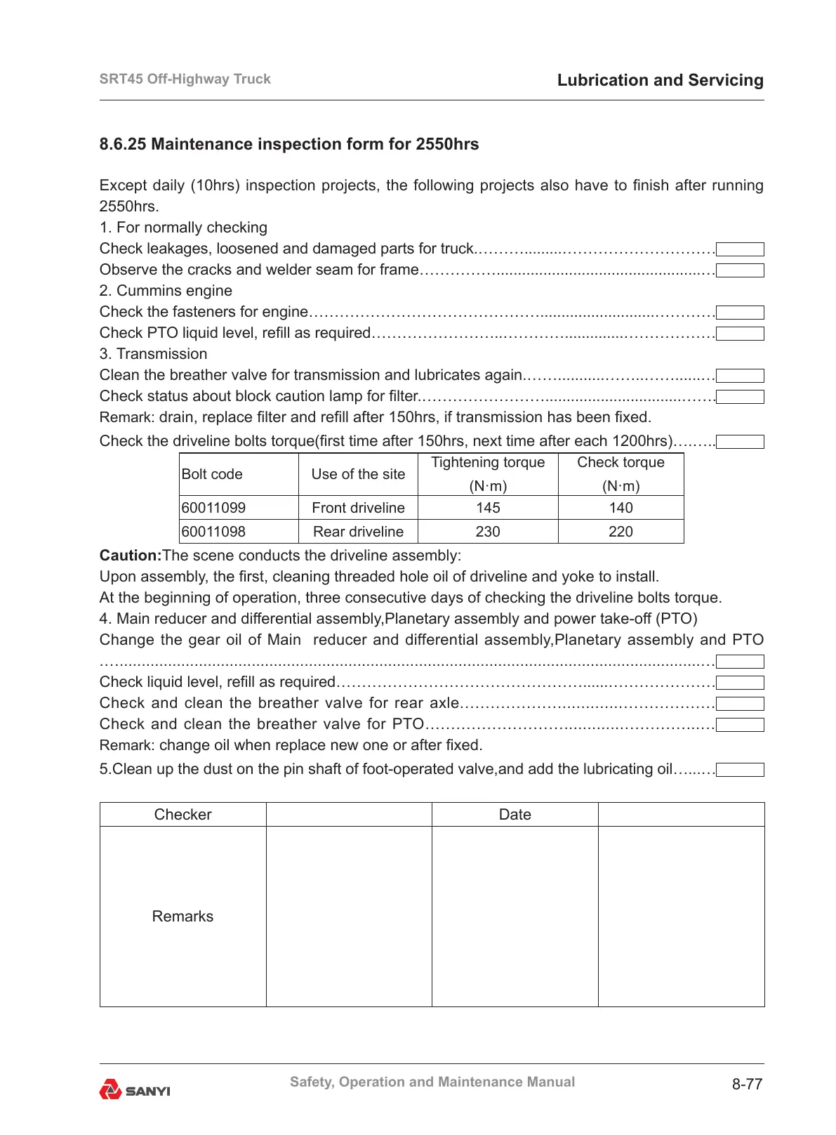 8.6.25 Maintenance inspection form for 2550hrs