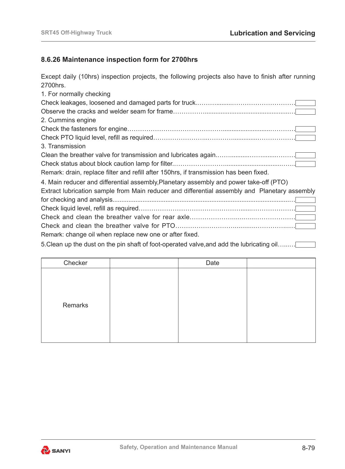 8.6.26 Maintenance inspection form for 2700hrs