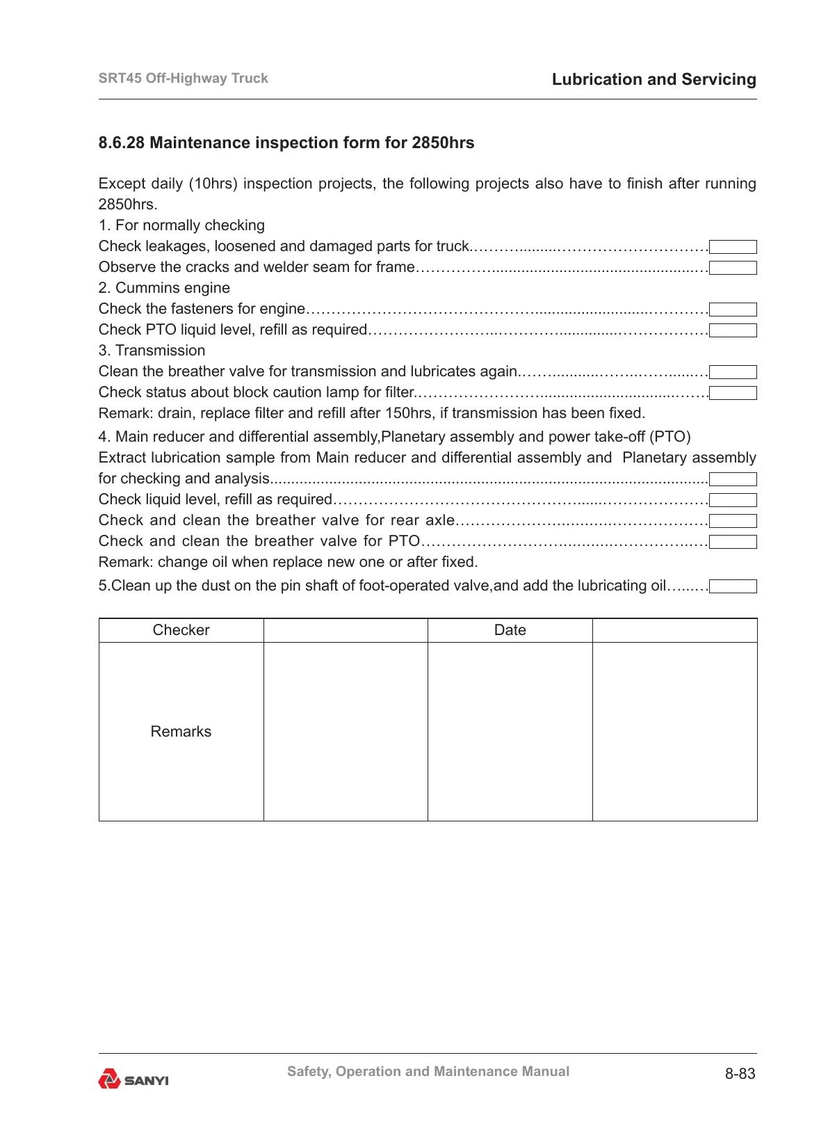 Check leakages, loosened and damaged parts for truck.……….........…………………………