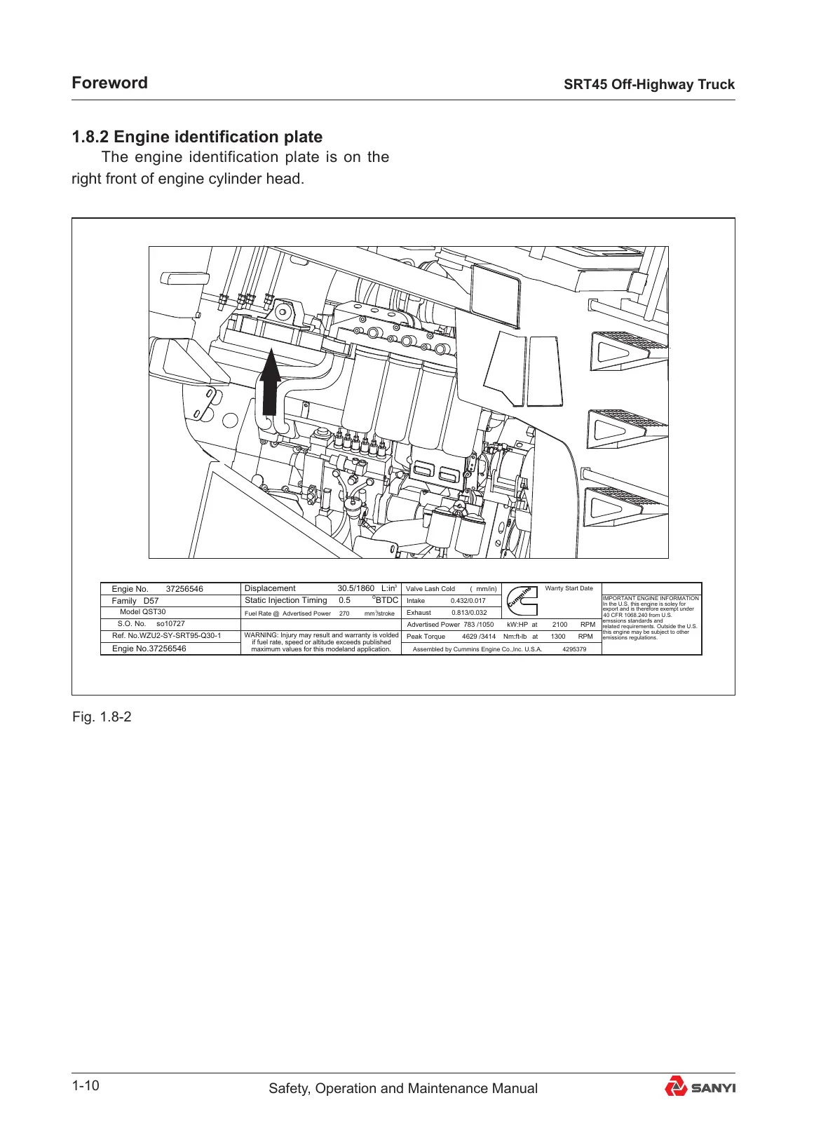 1.8.2 Engine identification plate