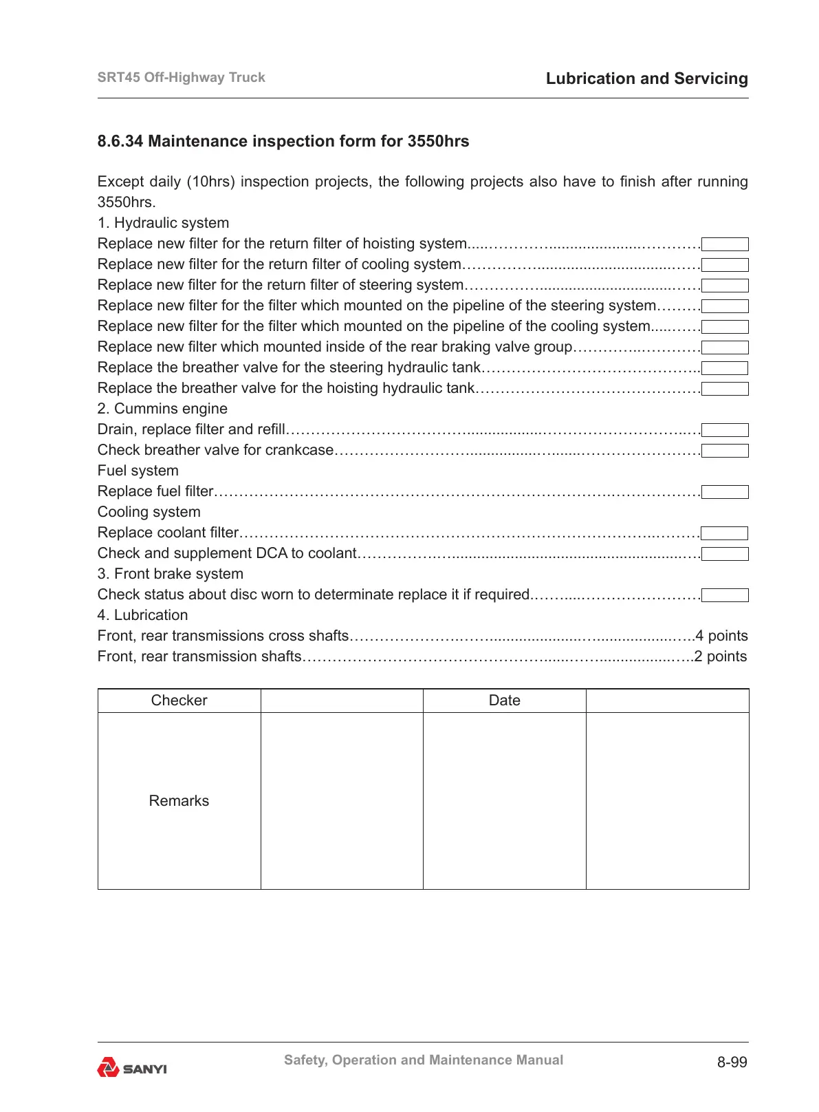 8.6.34 Maintenance inspection form for 3550hrs